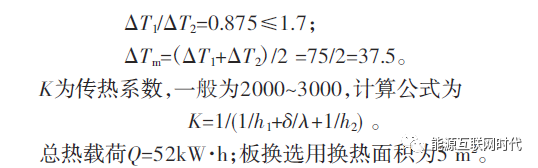 根据文献[4],换热面积等于总热负荷除以传热系数和平均对数温差值。公式为: